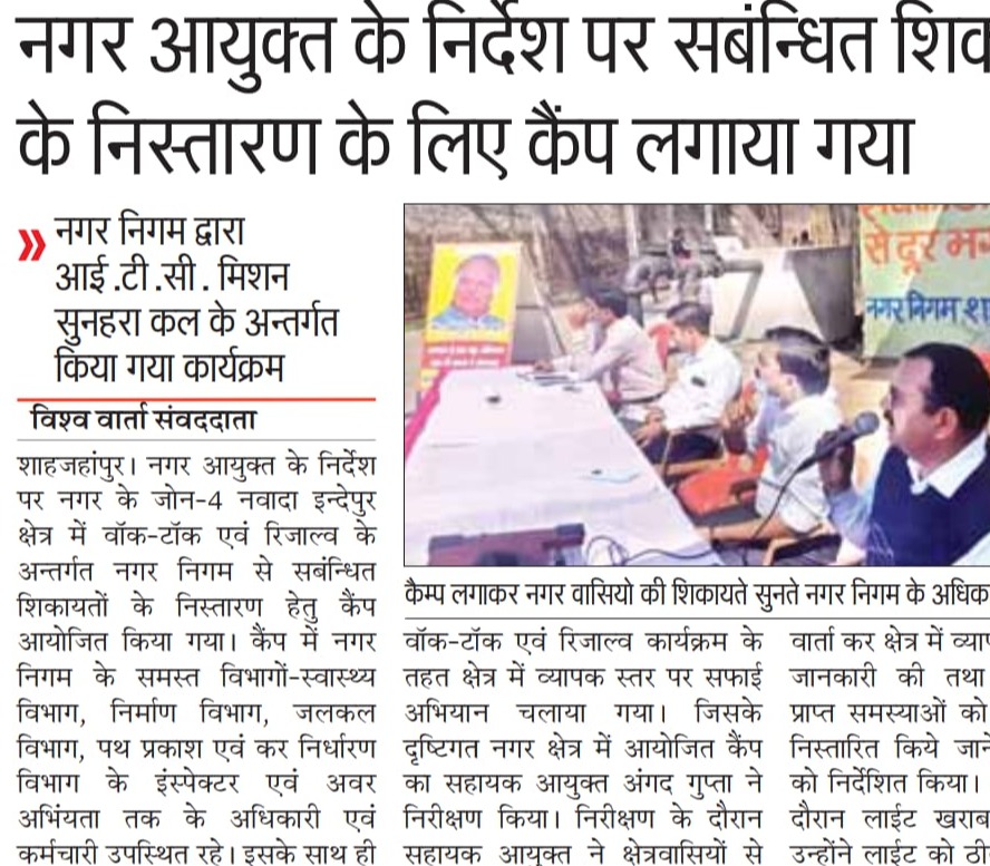 नगर आयुक्त के निर्देश पर संबंधित शिकायतों के निस्तारण के लिए कैंप लगाए गए।