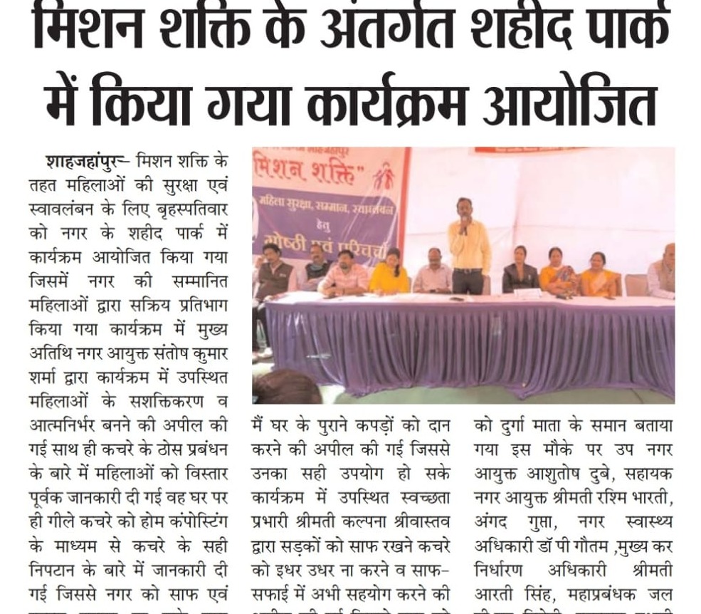 नगर के शहीद पार्क में मिशन शक्ति के अन्तर्गत कार्यक्रम आयोजित किया गया
