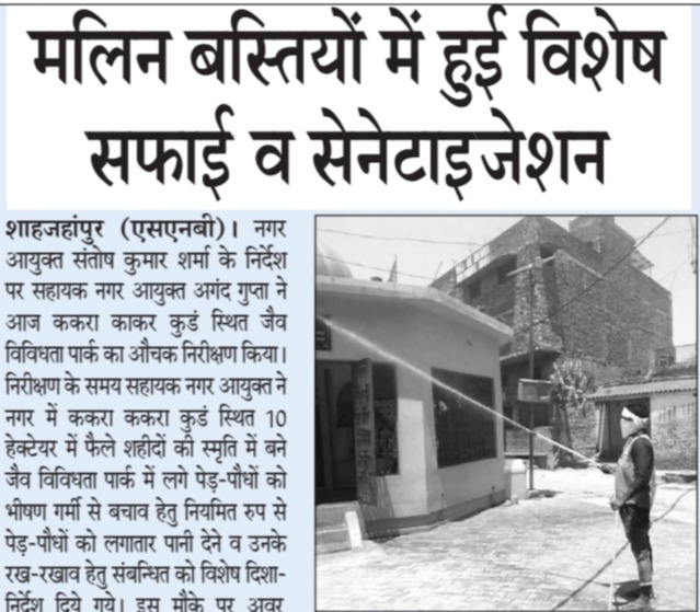 कोरोना संक्रमण से बचाव हेतु शाहजहांपुर के विभिन्न क्षेत्रों में कराया गया सेनिटाइजेशन।