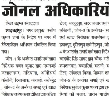 नगर आयुक्त के निर्देश पर शाहजहांपुर के विभिन्न क्षेत्रों में हुई सफाई।