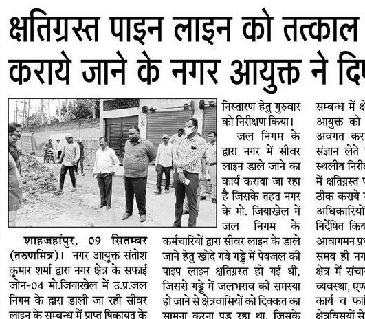 क्षतिग्रस्त पाइपलाइन की तत्काल मरम्मत के लिए नगर आयुक्त महोदय ने दिए निर्देश।