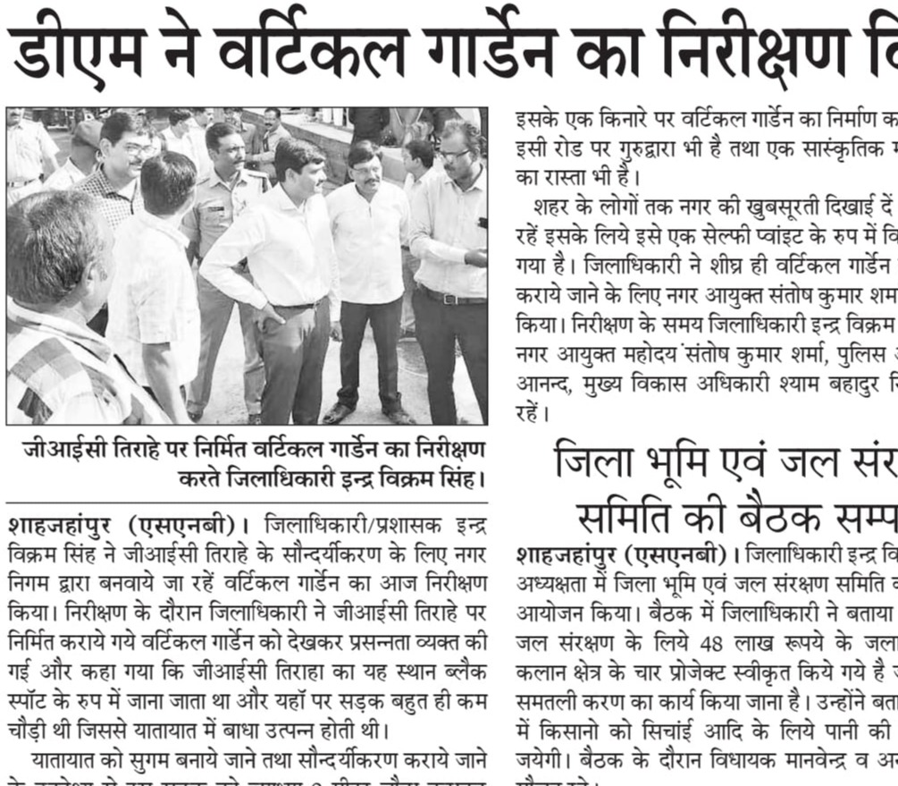जिलाधिकारी ने जी०आई०सी० तिराहे के सौंदर्यीकरण हेतु बनाये गए वर्टिकल गार्डन का निरीक्षण किया
